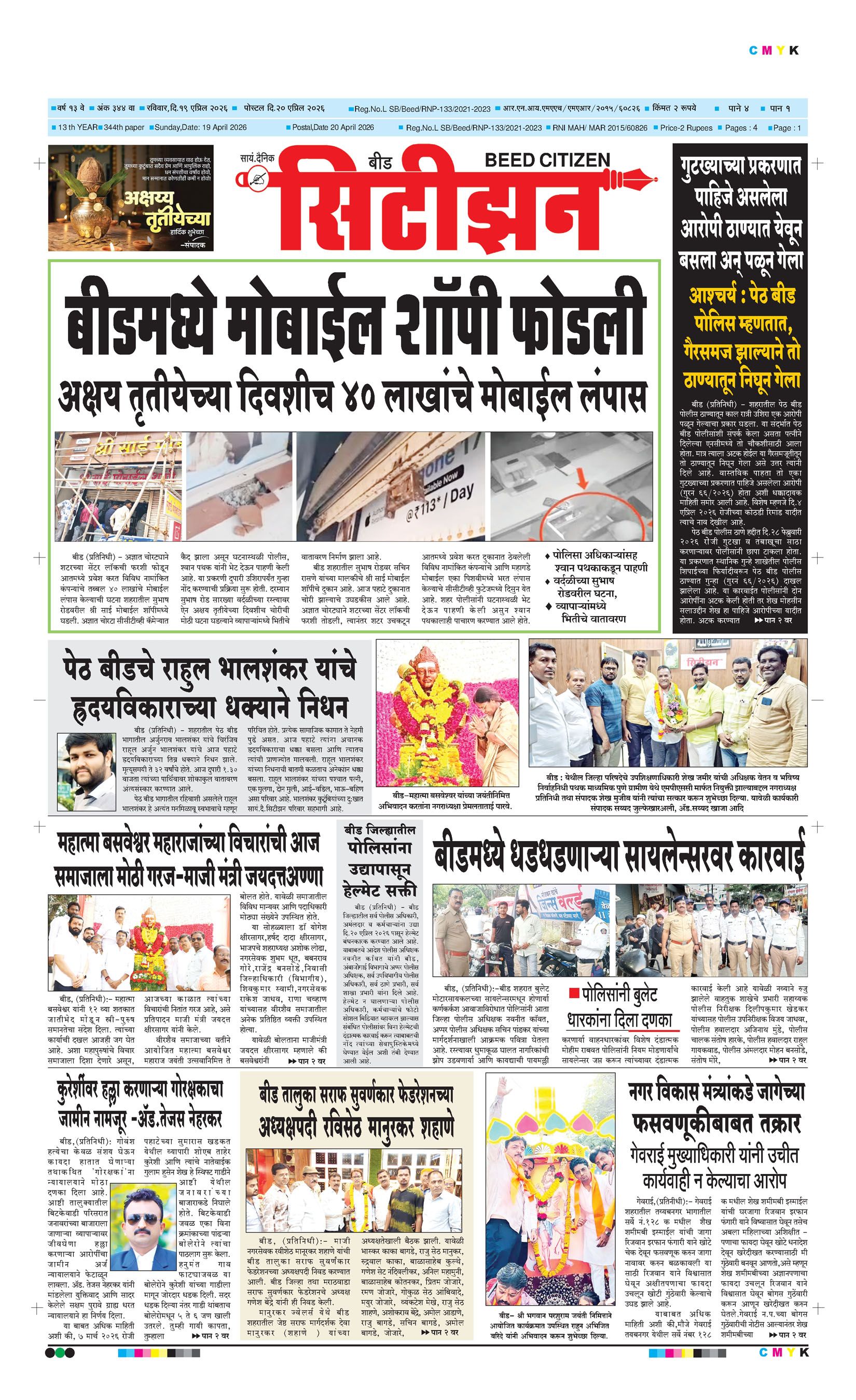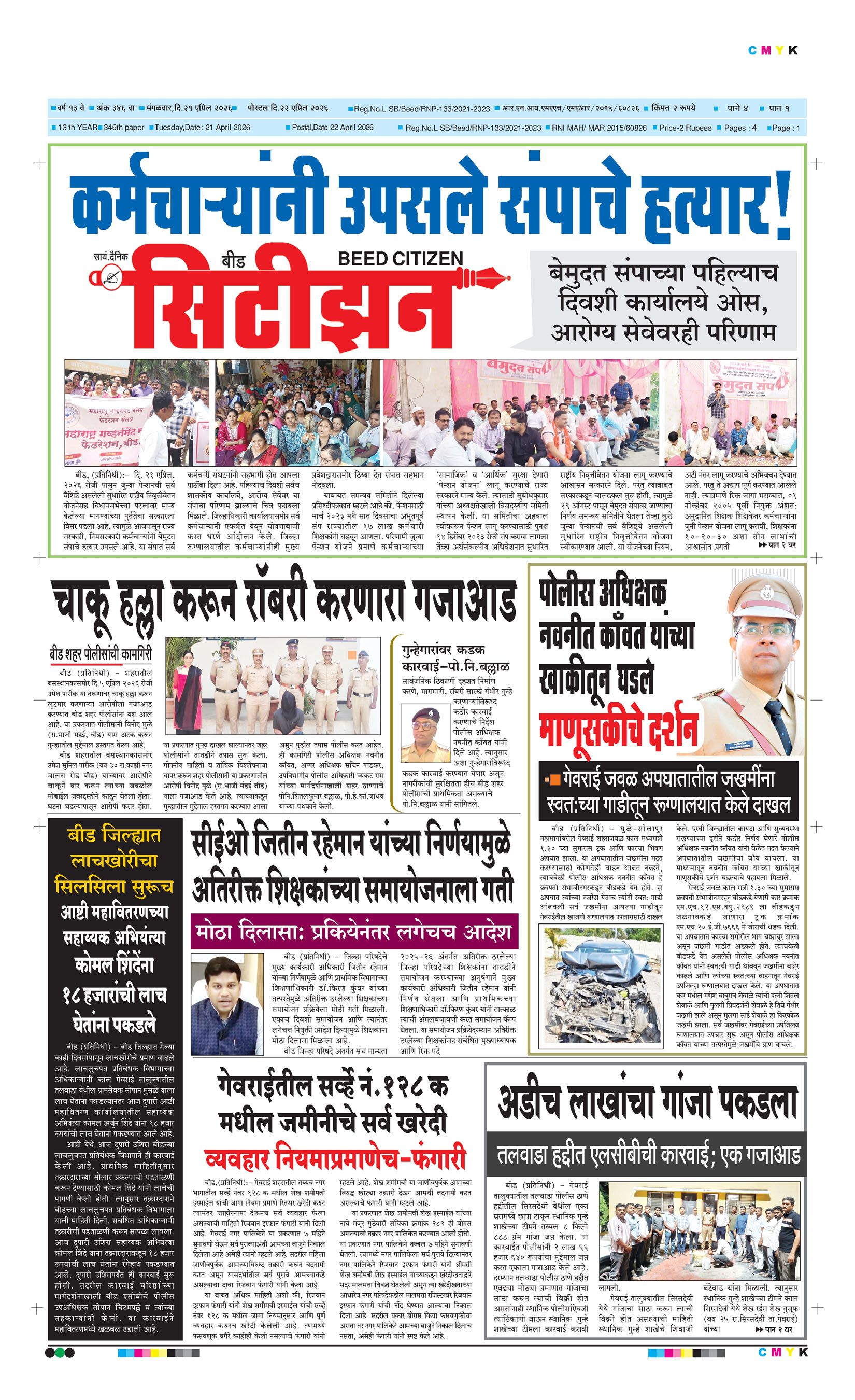 बशीरगंज, बी.एस.एन.एल. टॉवरसमोर, नवीन भाजी मंडई रोड, बीड - ४३११२२ फोन/फॅक्स नं.०२४४२-२२७८६३ Email: [email protected]; [email protected] Page 1 Page 2 Page 3 Page 4 Monday, 20 April 2026