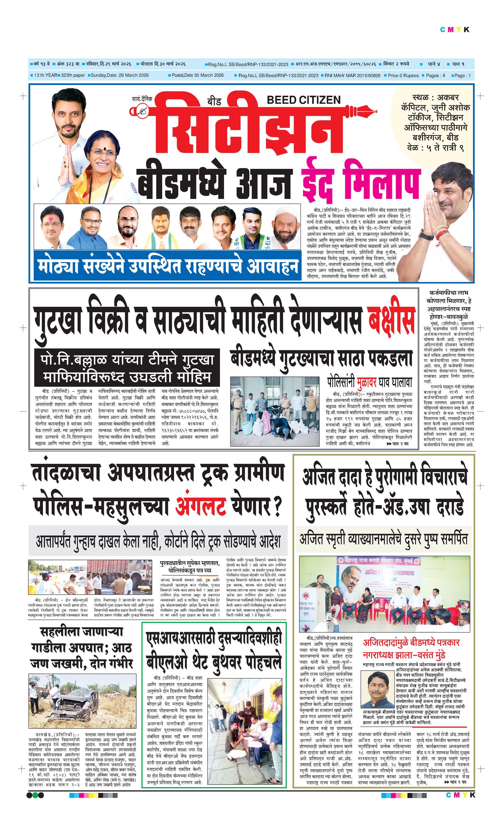 बशीरगंज, बी.एस.एन.एल. टॉवरसमोर, नवीन भाजी मंडई रोड, बीड - ४३११२२ फोन/फॅक्स नं.०२४४२-२२७८६३ Email: [email protected]; [email protected] Page 1 Page 2 Page 3 Page 4 Sunday, 29 March 2026