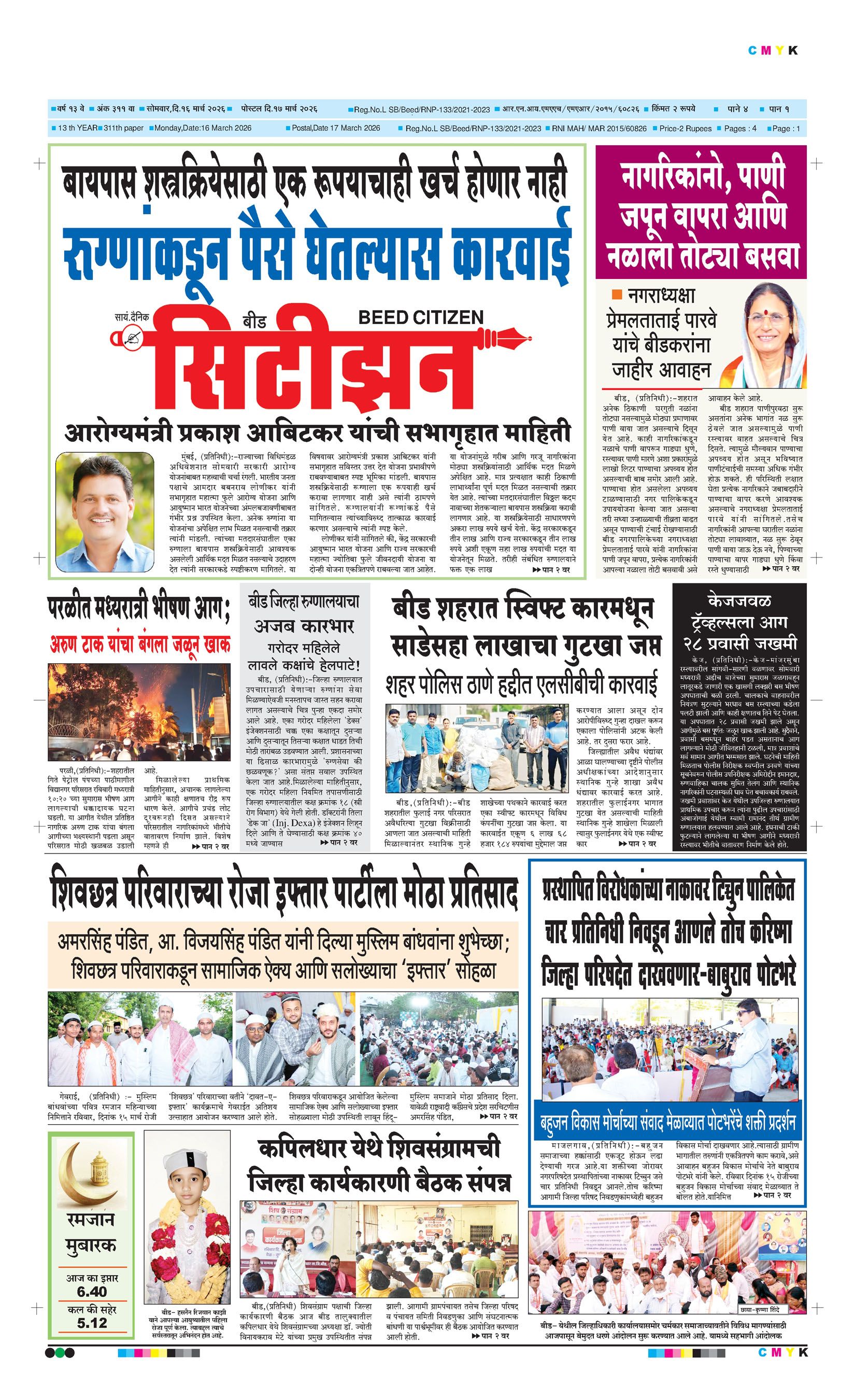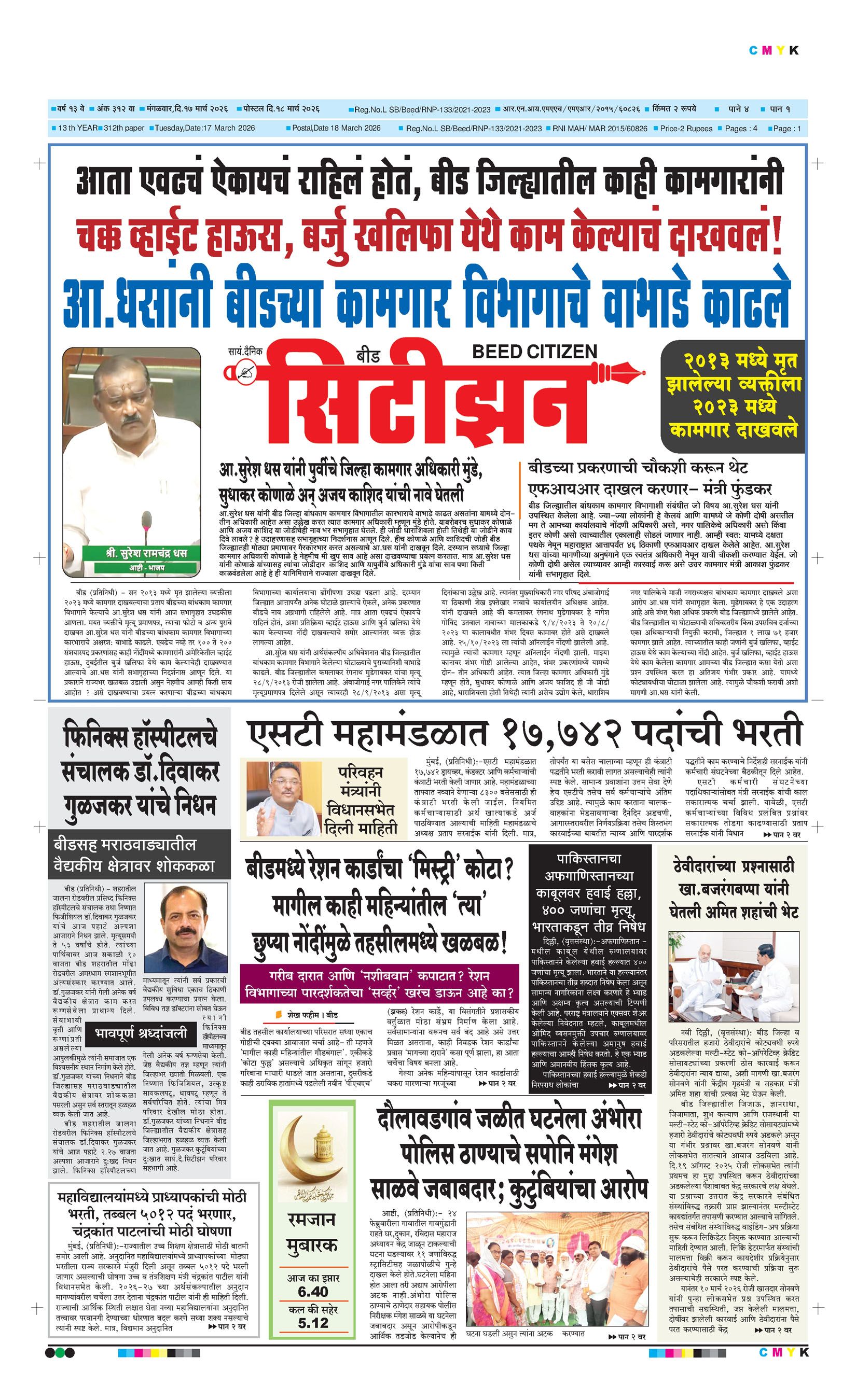 बशीरगंज, बी.एस.एन.एल. टॉवरसमोर, नवीन भाजी मंडई रोड, बीड - ४३११२२ फोन/फॅक्स नं.०२४४२-२२७८६३ Email: [email protected]; [email protected] Page 1 Page 2 Page 3 Page 4 Wednesday, 18 March 2026