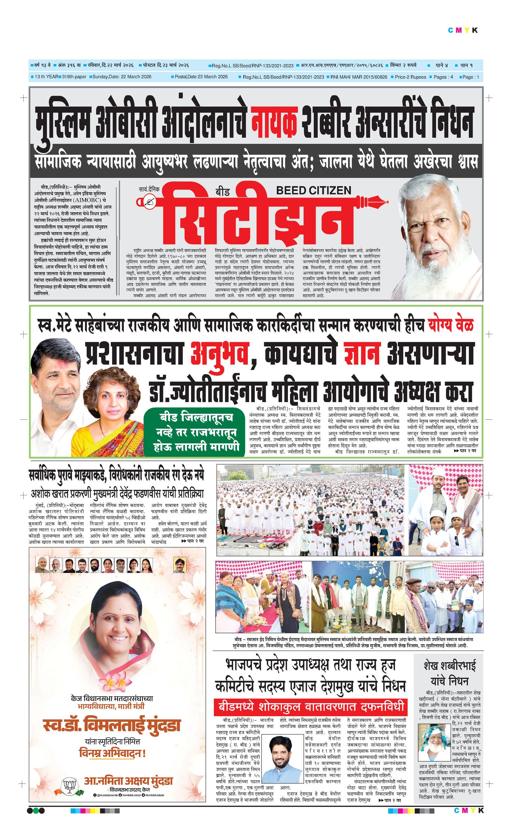 बशीरगंज, बी.एस.एन.एल. टॉवरसमोर, नवीन भाजी मंडई रोड, बीड - ४३११२२ फोन/फॅक्स नं.०२४४२-२२७८६३ Email: [email protected]; [email protected] Page 1 Page 2 Page 3 Page 4 Monday, 23 March 2026