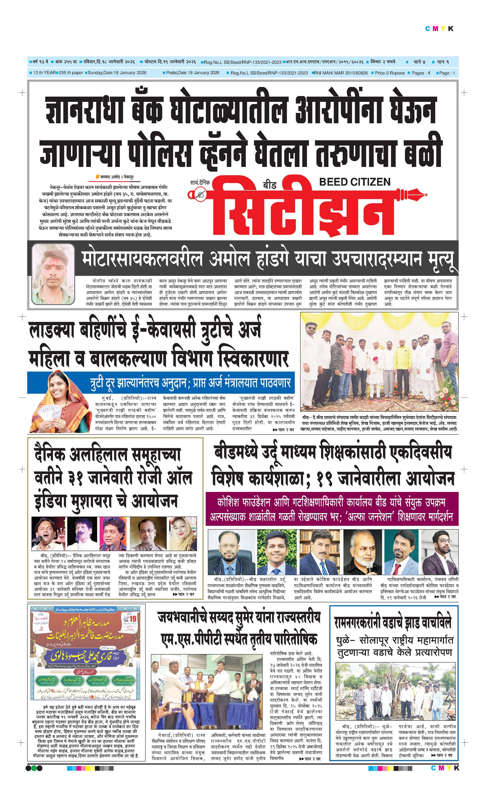 बशीरगंज, बी.एस.एन.एल. टॉवरसमोर, नवीन भाजी मंडई रोड, बीड - ४३११२२ फोन/फॅक्स नं.०२४४२-२२७८६३ Email: [email protected]; [email protected] Page 1 Page 2 Page 3 Page 4 Monday, 19 January 2026