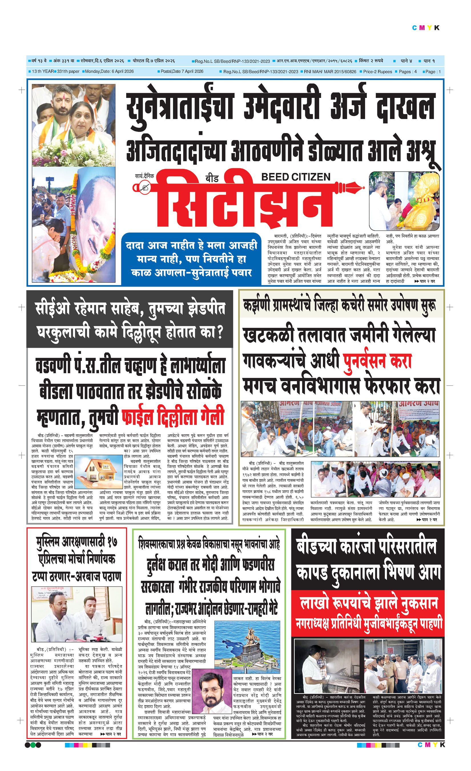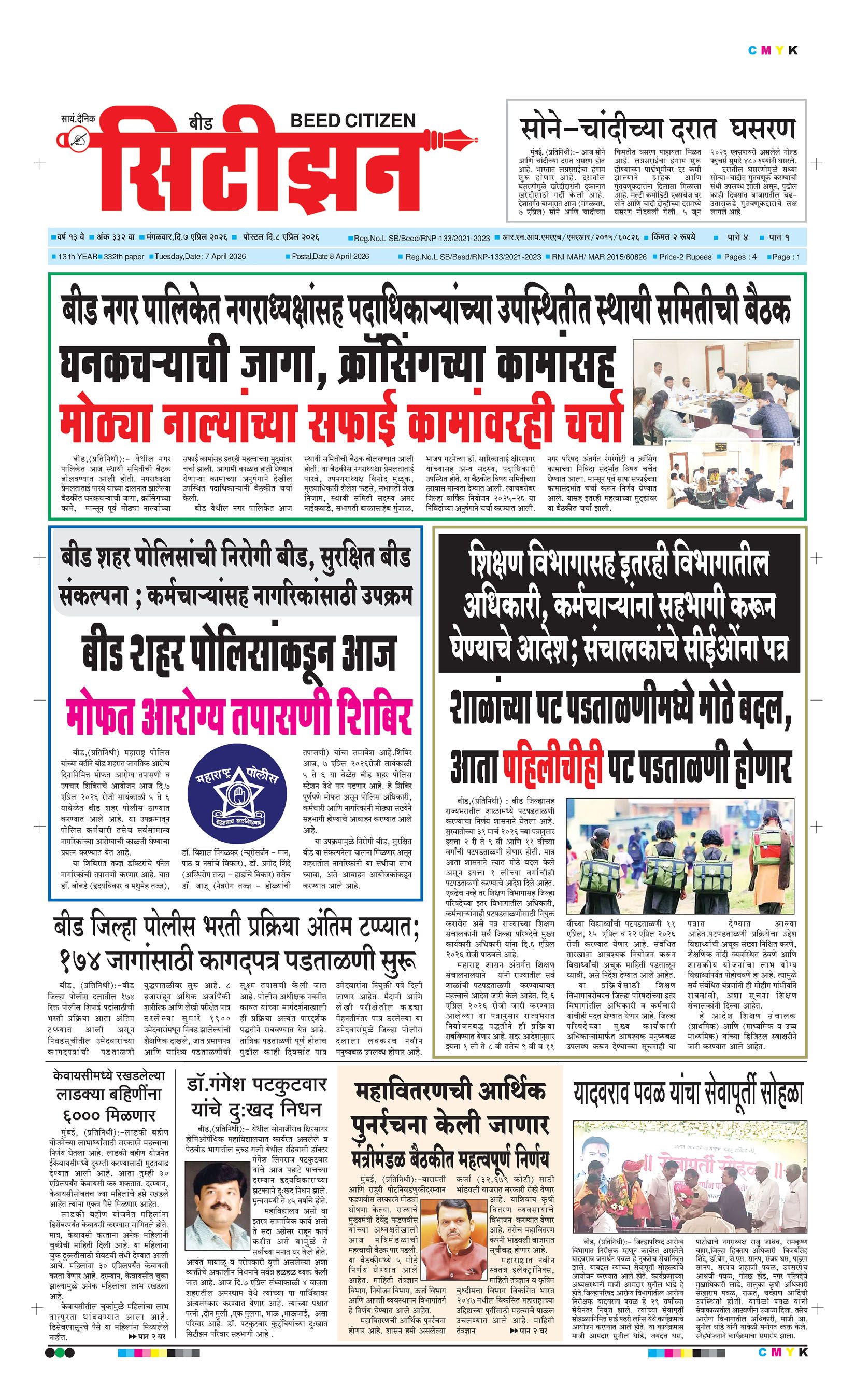 बशीरगंज, बी.एस.एन.एल. टॉवरसमोर, नवीन भाजी मंडई रोड, बीड - ४३११२२ फोन/फॅक्स नं.०२४४२-२२७८६३ Email: [email protected]; [email protected] Page 1 Page 2 Page 3 Page 4 Wednesday, 8 April 2026