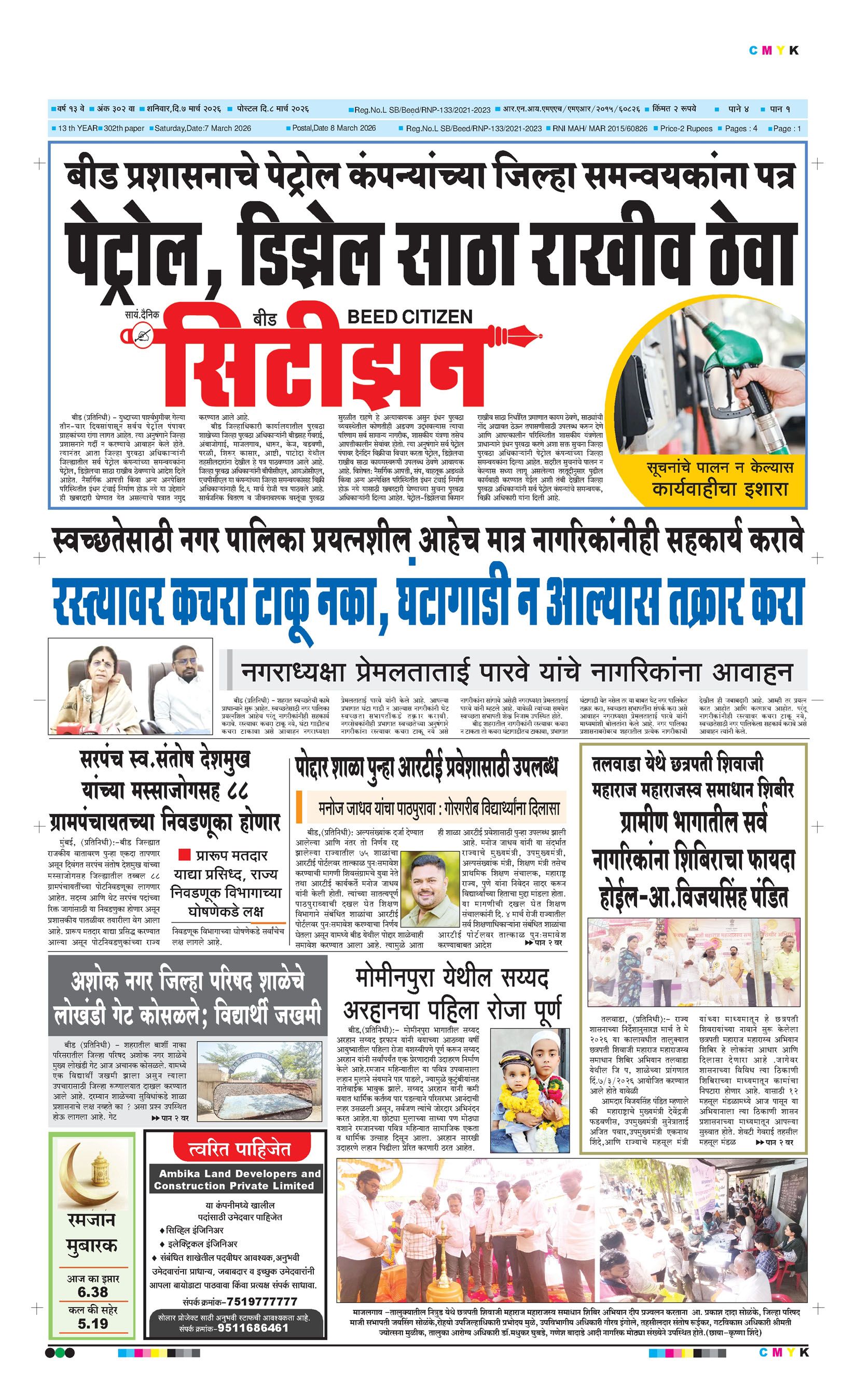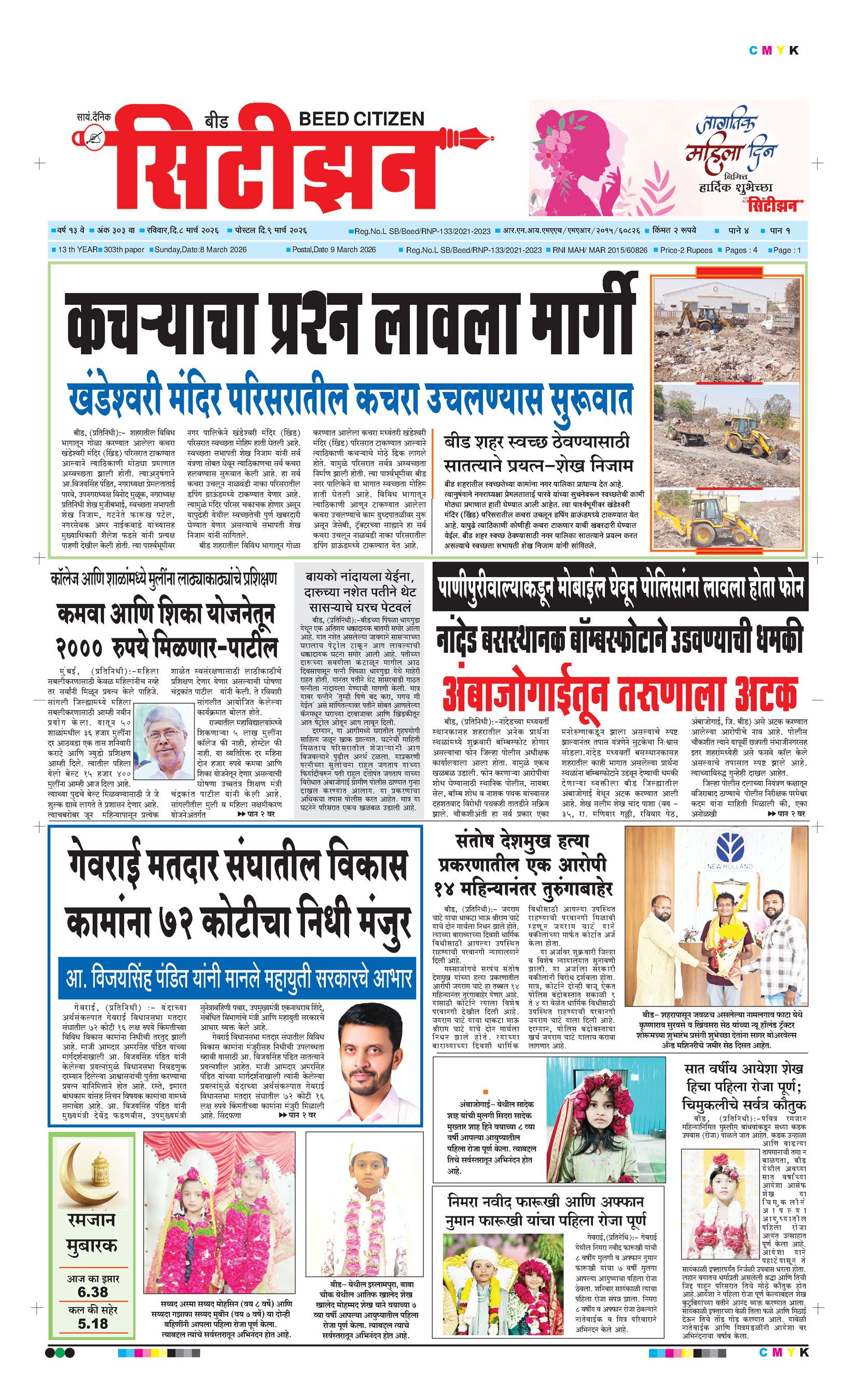 बशीरगंज, बी.एस.एन.एल. टॉवरसमोर, नवीन भाजी मंडई रोड, बीड - ४३११२२ फोन/फॅक्स नं.०२४४२-२२७८६३ Email: [email protected]; [email protected] Page 1 Page 2 Page 3 Page 4 Sunday, 8 March 2026