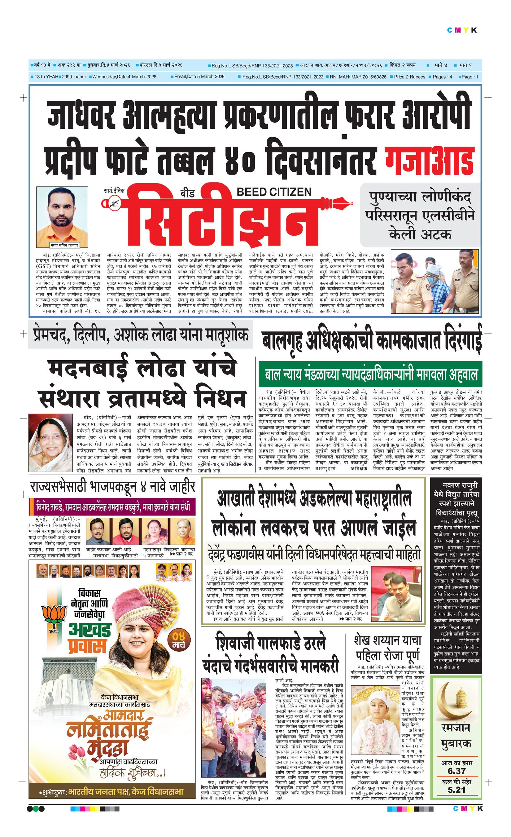 बशीरगंज, बी.एस.एन.एल. टॉवरसमोर, नवीन भाजी मंडई रोड, बीड - ४३११२२ फोन/फॅक्स नं.०२४४२-२२७८६३ Email: [email protected]; [email protected] Page 1 Page 2 Page 3 Page 4 Wednesday, 4 March 2026