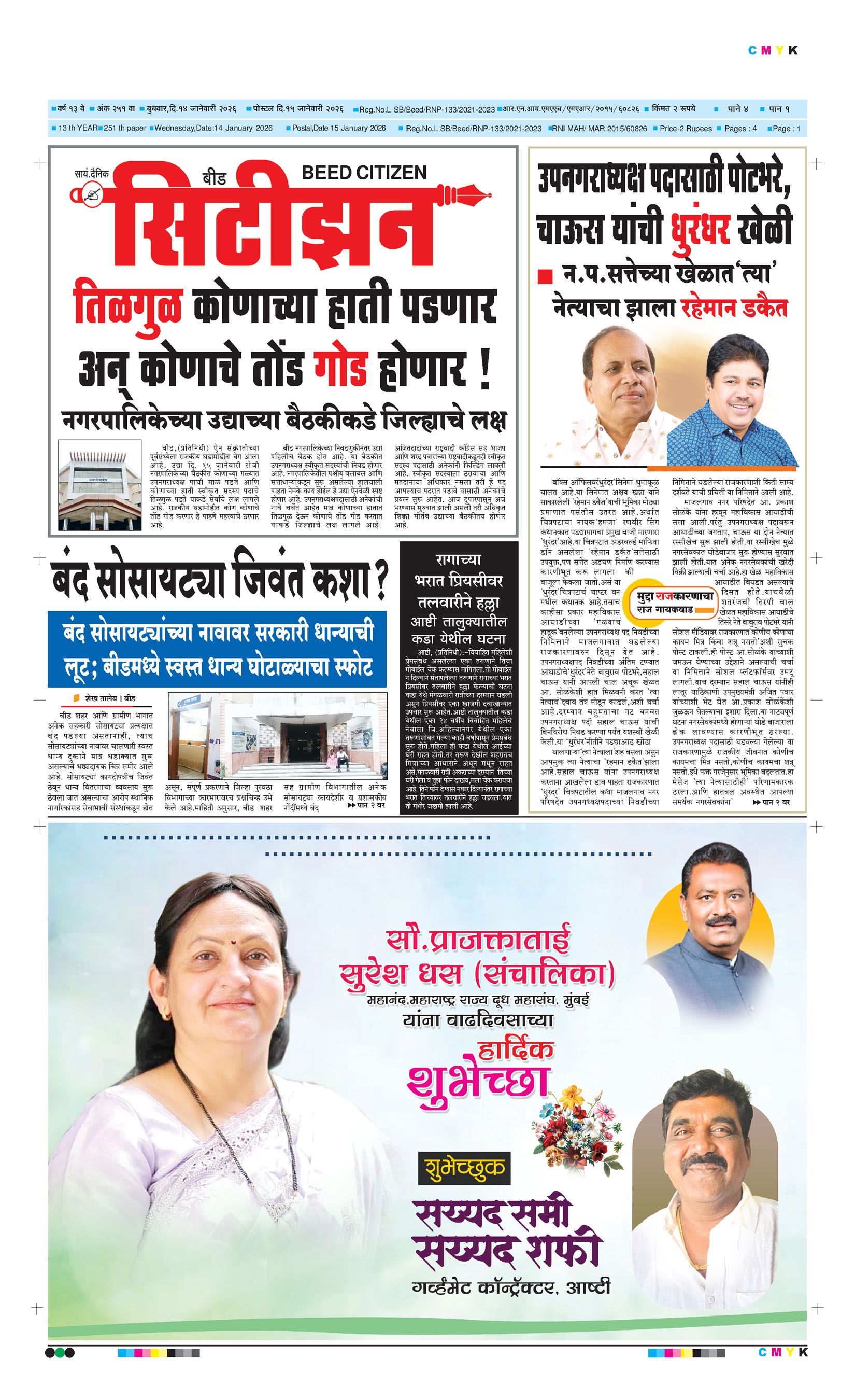 बशीरगंज, बी.एस.एन.एल. टॉवरसमोर, नवीन भाजी मंडई रोड, बीड - ४३११२२ फोन/फॅक्स नं.०२४४२-२२७८६३ Email: [email protected]; [email protected] Page 1 Page 2 Page 3 Page 4 Thursday, 15 January 2026