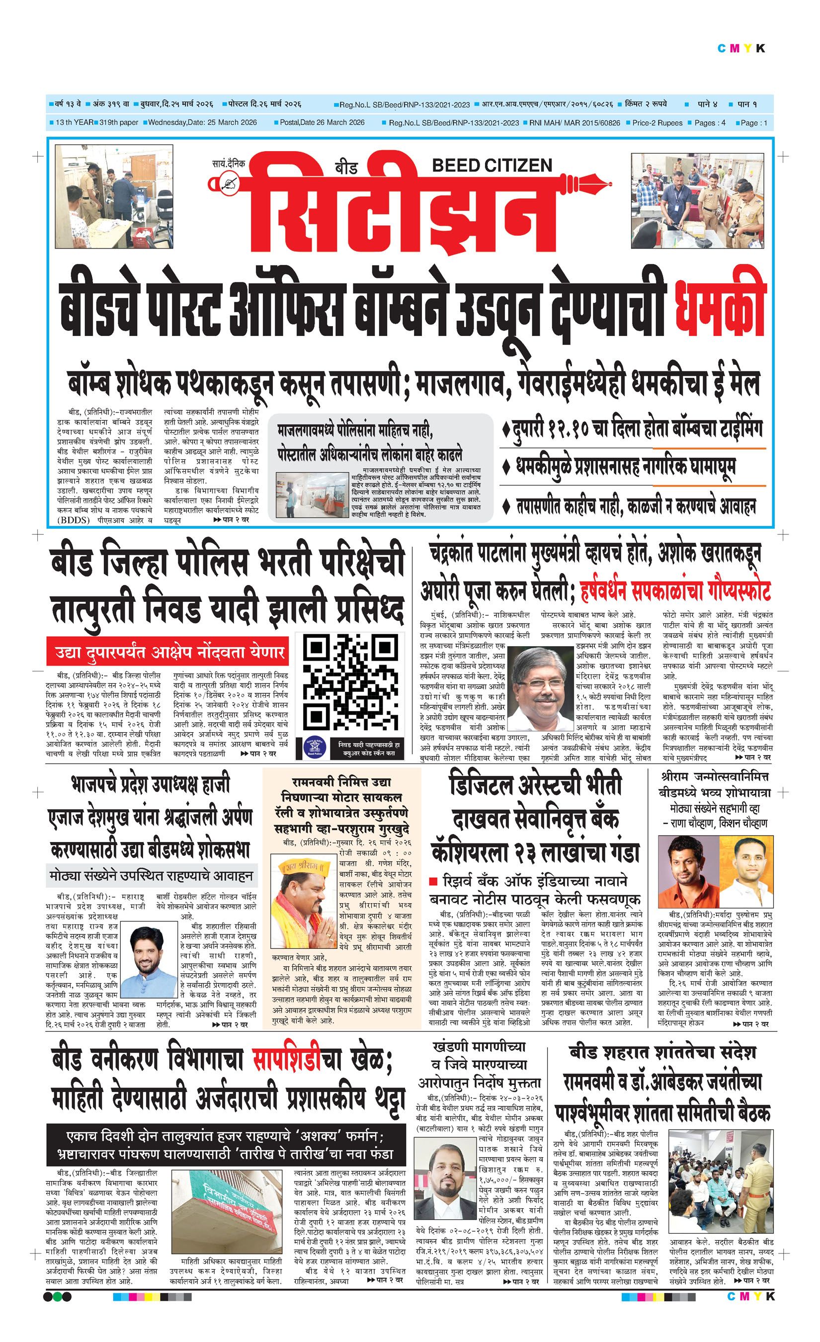बशीरगंज, बी.एस.एन.एल. टॉवरसमोर, नवीन भाजी मंडई रोड, बीड - ४३११२२ फोन/फॅक्स नं.०२४४२-२२७८६३ Email: [email protected]; [email protected] Page 1 Page 2 Page 3 Page 4 Thursday, 26 March 2026