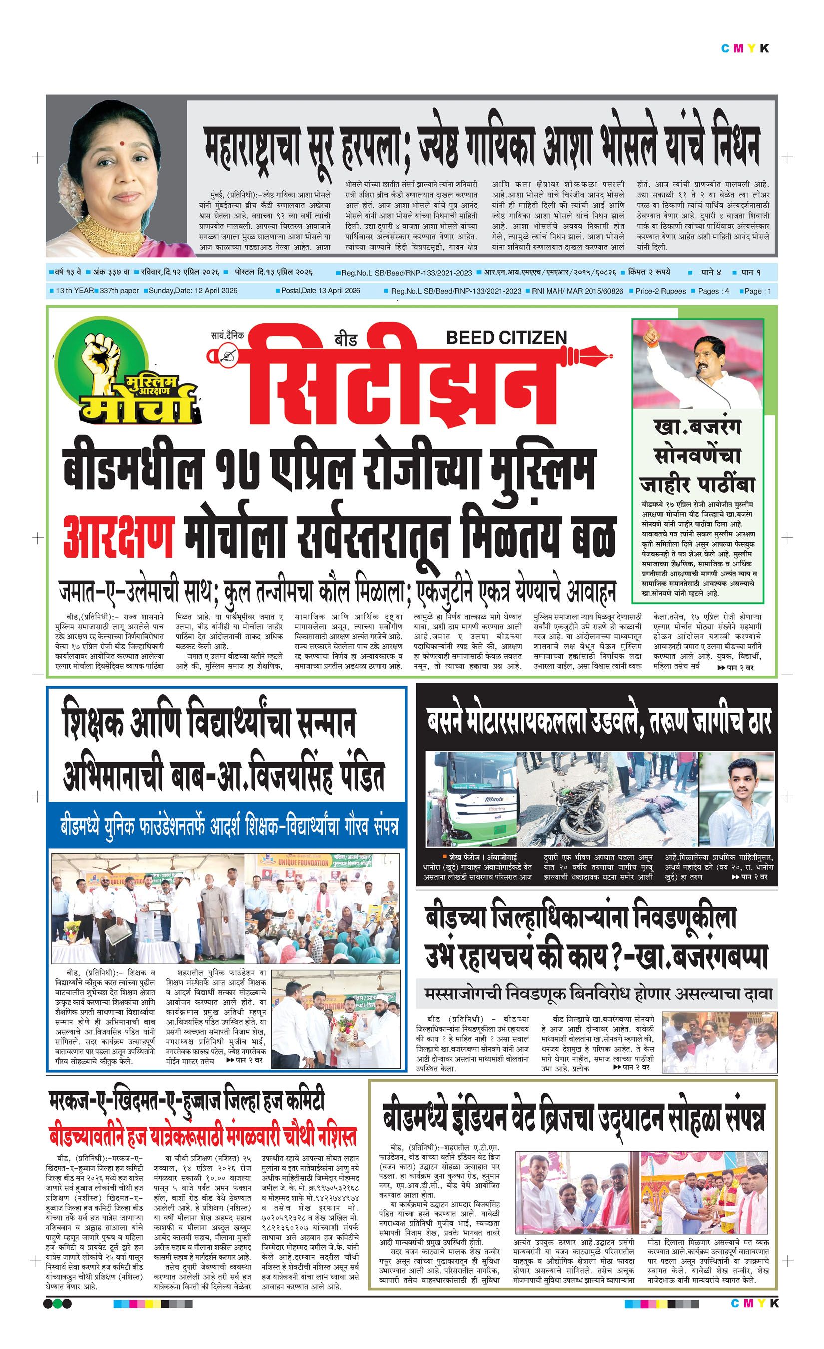 बशीरगंज, बी.एस.एन.एल. टॉवरसमोर, नवीन भाजी मंडई रोड, बीड - ४३११२२ फोन/फॅक्स नं.०२४४२-२२७८६३ Email: [email protected]; [email protected] Page 1 Page 2 Page 3 Page 4 Monday, 13 April 2026