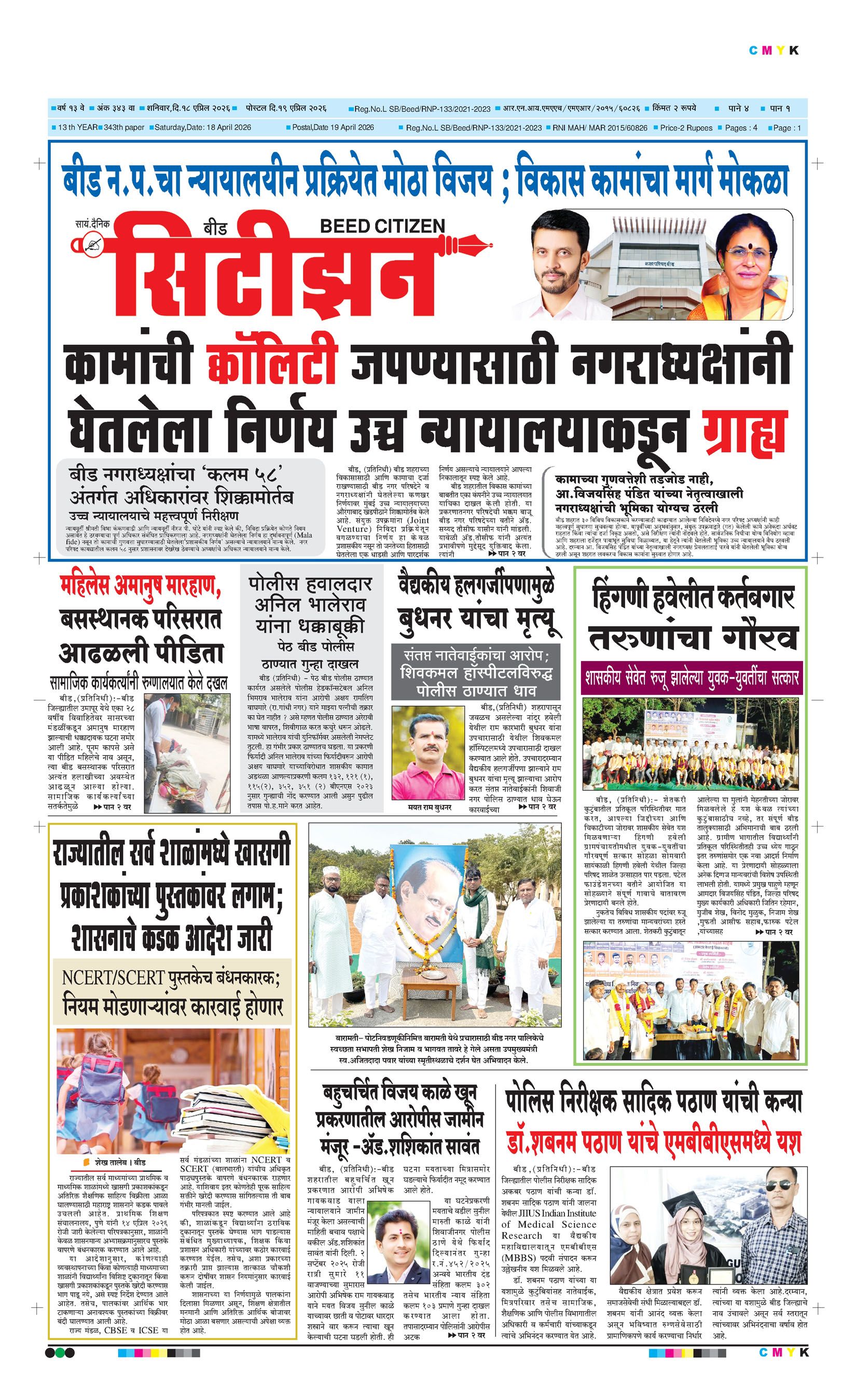 बशीरगंज, बी.एस.एन.एल. टॉवरसमोर, नवीन भाजी मंडई रोड, बीड - ४३११२२ फोन/फॅक्स नं.०२४४२-२२७८६३ Email: [email protected]; [email protected] Page 1 Page 2 Page 3 Page 4 Saturday, 18 April 2026