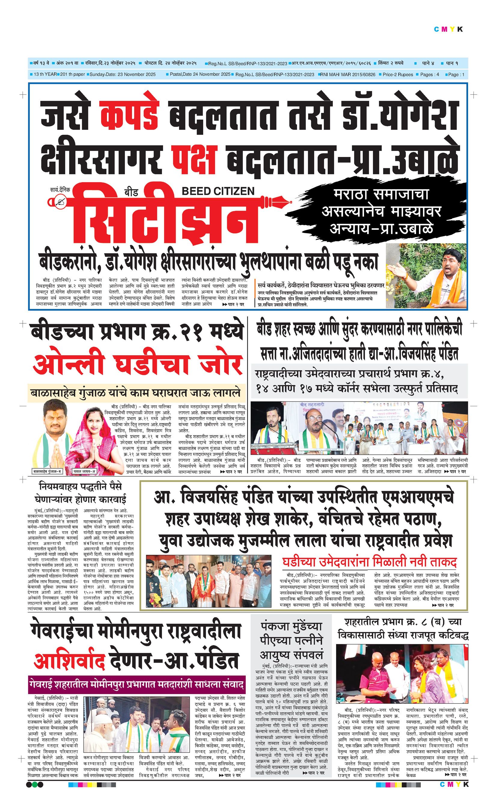 बशीरगंज, बी.एस.एन.एल. टॉवरसमोर, नवीन भाजी मंडई रोड, बीड - ४३११२२ फोन/फॅक्स नं.०२४४२-२२७८६३ Email: [email protected]; [email protected] Page 1 Page 2 Page 3 Page 4 Sunday, 23 November 2025