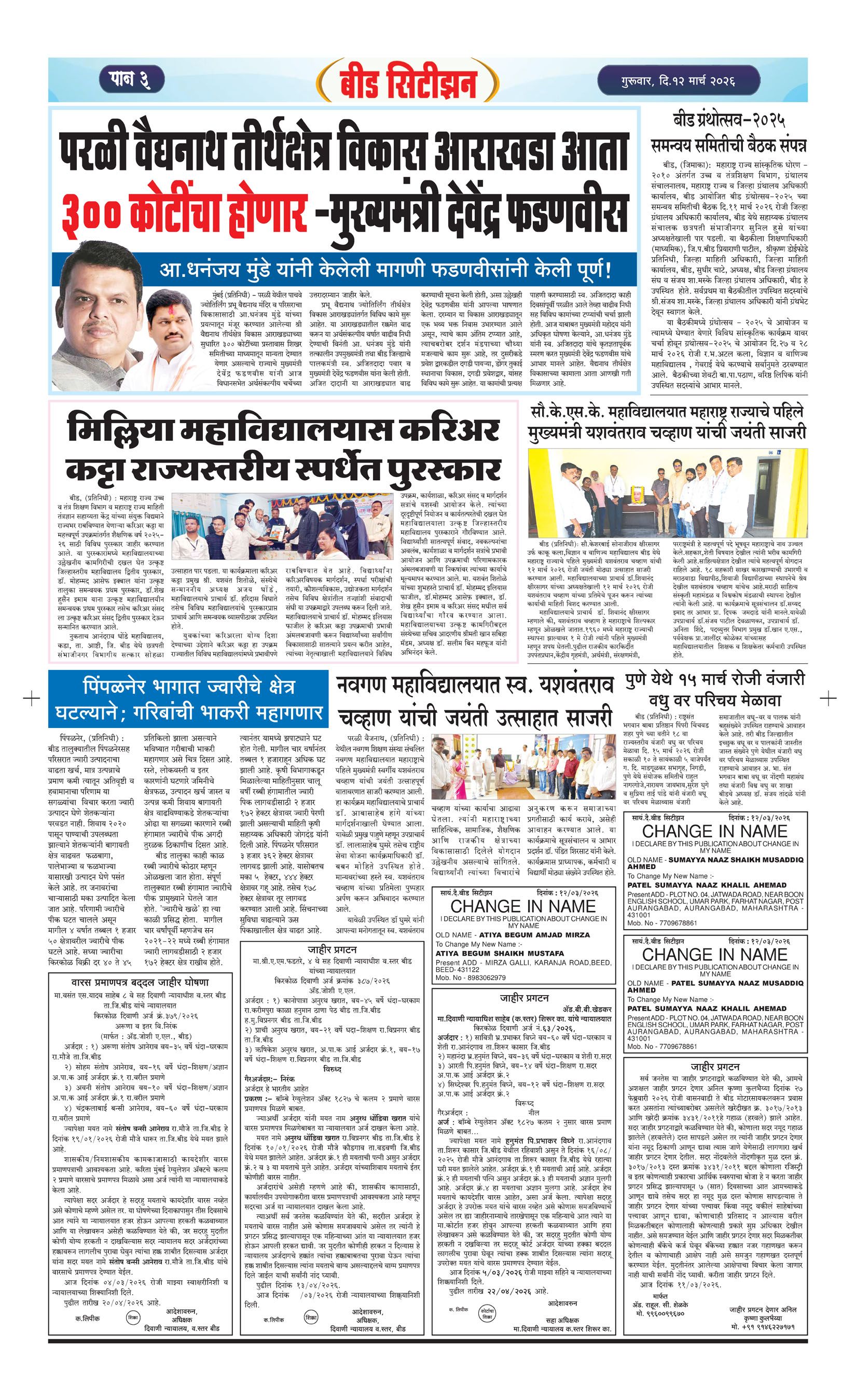 बशीरगंज, बी.एस.एन.एल. टॉवरसमोर, नवीन भाजी मंडई रोड, बीड - ४३११२२ फोन/फॅक्स नं.०२४४२-२२७८६३ Email: [email protected]; [email protected] Page 1 Page 2 Page 3 Page 4 Sunday, 14 December 2025