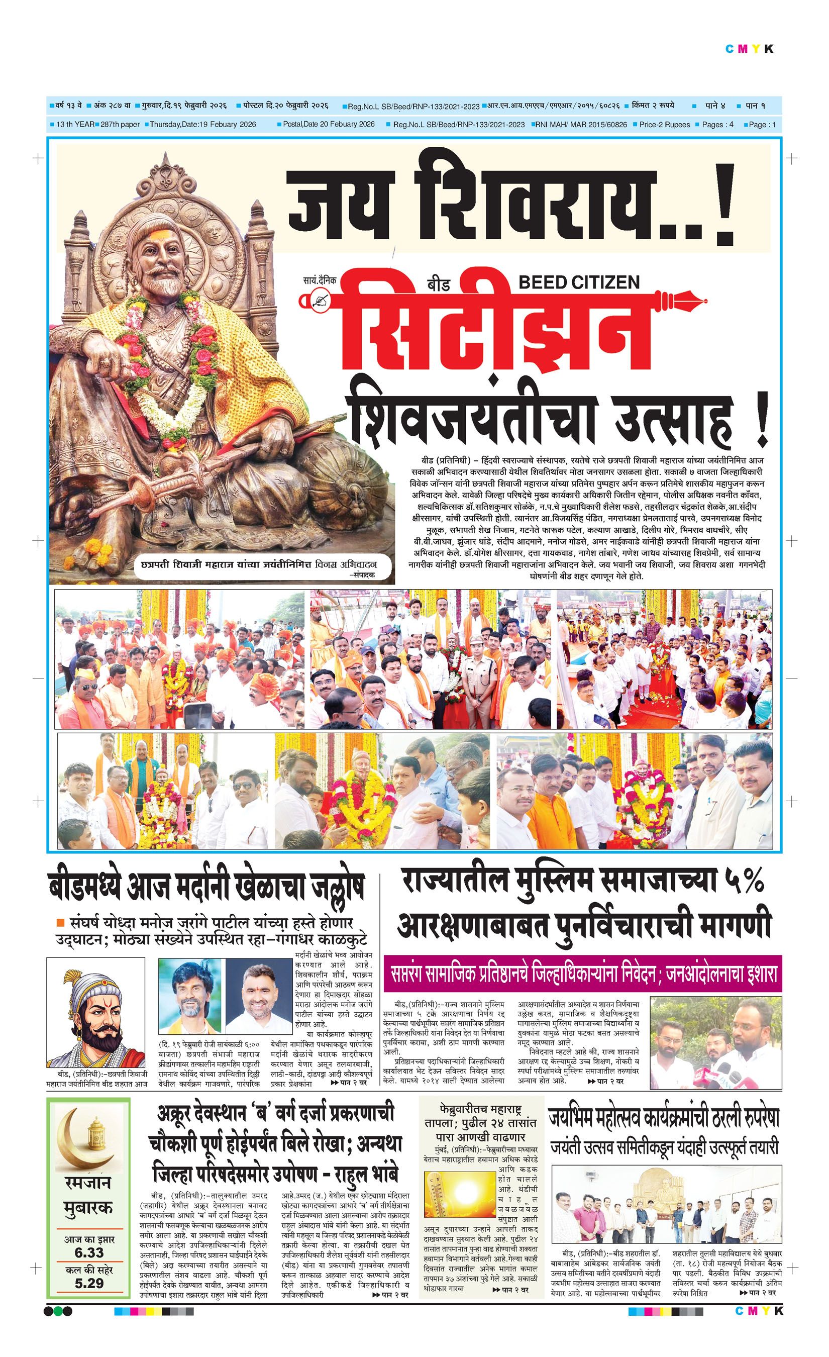 बशीरगंज, बी.एस.एन.एल. टॉवरसमोर, नवीन भाजी मंडई रोड, बीड - ४३११२२ फोन/फॅक्स नं.०२४४२-२२७८६३ Email: [email protected]; [email protected] Page 1 Page 2 Page 3 Page 4 Friday, 20 February 2026