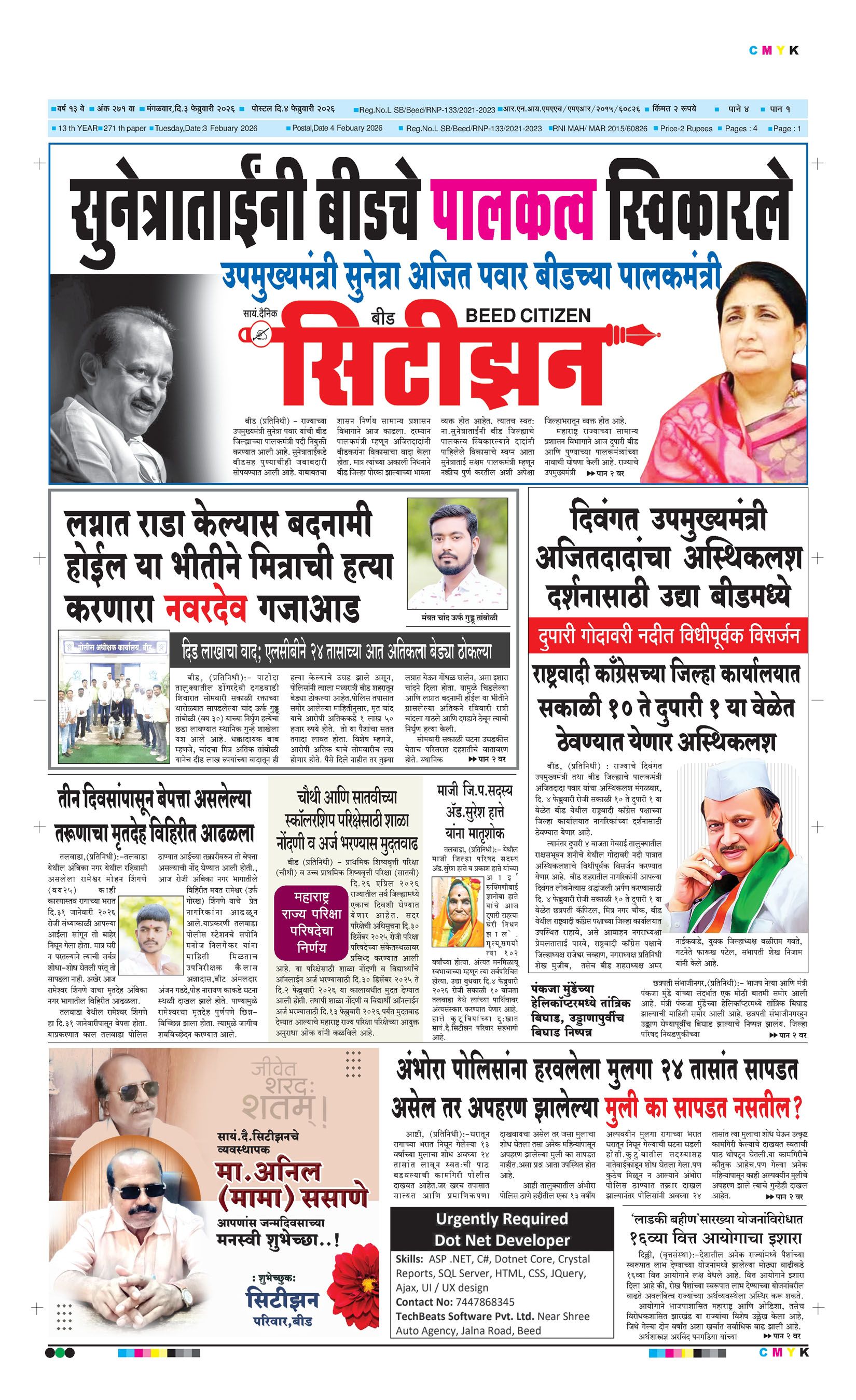 बशीरगंज, बी.एस.एन.एल. टॉवरसमोर, नवीन भाजी मंडई रोड, बीड - ४३११२२ फोन/फॅक्स नं.०२४४२-२२७८६३ Email: [email protected]; [email protected] Page 1 Page 2 Page 3 Page 4 Thursday, 5 February 2026