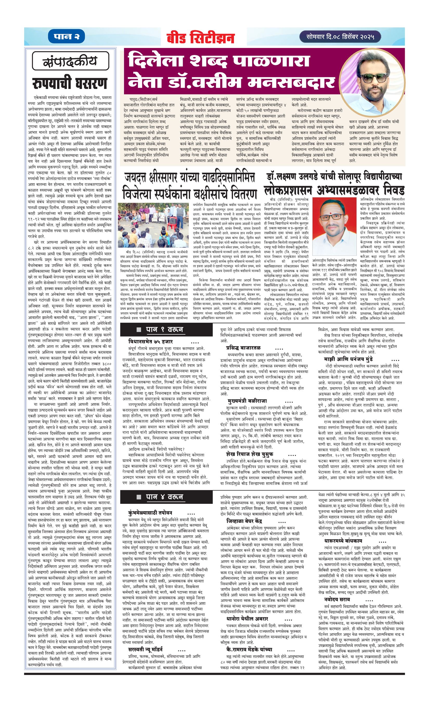 बशीरगंज, बी.एस.एन.एल. टॉवरसमोर, नवीन भाजी मंडई रोड, बीड - ४३११२२ फोन/फॅक्स नं.०२४४२-२२७८६३ Email: [email protected]; [email protected] Page 1 Page 2 Page 3 Page 4 Sunday, 9 November 2025